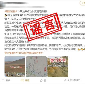 “西部战区”微信公众号6日集中辟谣:“中印边境发生冲突,解放军收复楚马要塞”等等,系网络谣言。